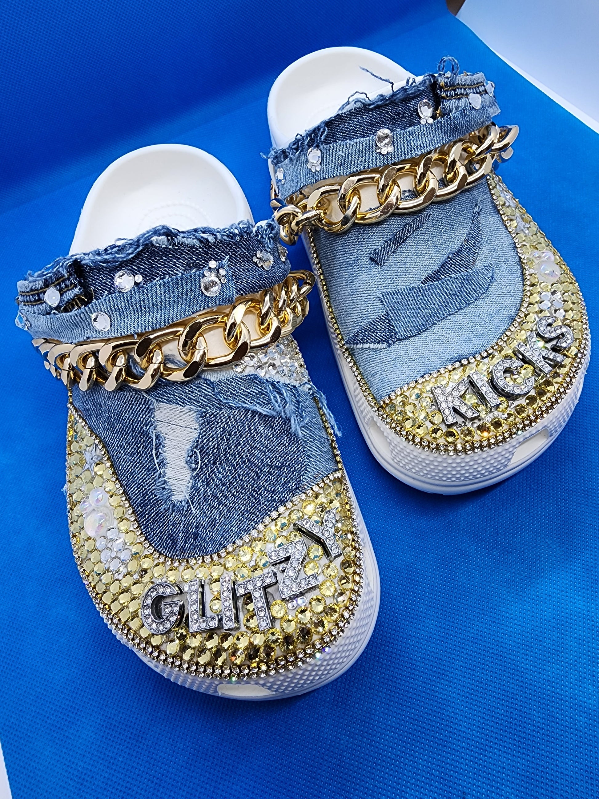 - Custom Designs may include: bling gems, patches/ material, jibbtiz (character/ letter) and/or charms