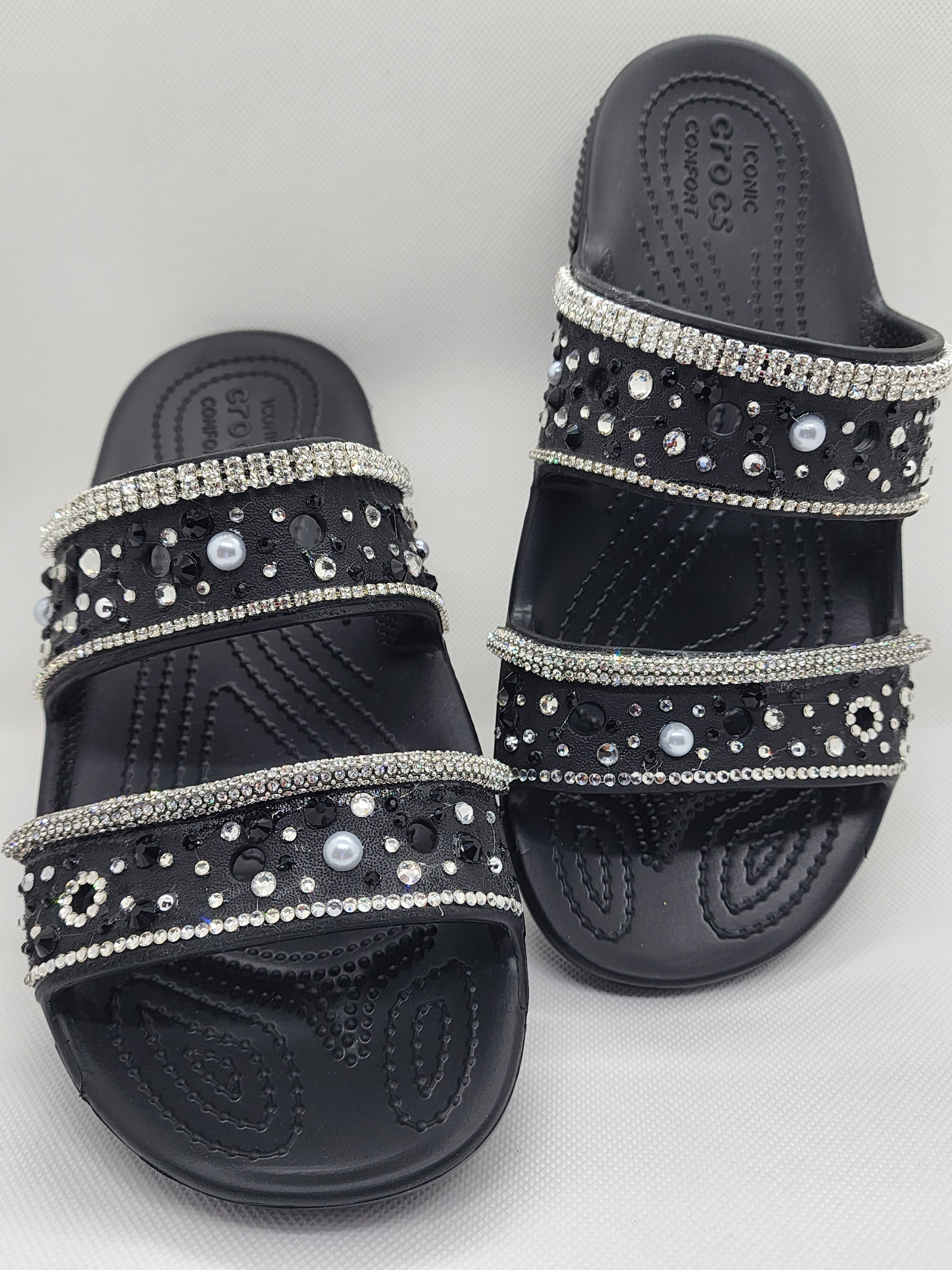 - Custom Designs may include: bling gems, patches/ material, jibbtiz (character/ letter) and/or charms
